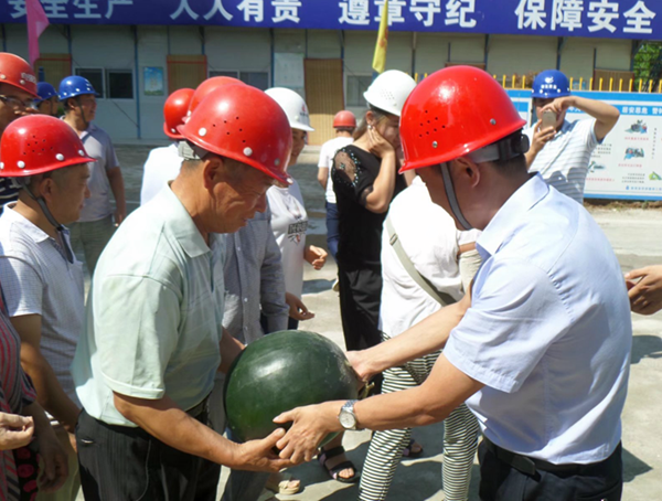 2017年7月13日上午,銅川市住建局副局長(zhǎng)郭小放、銅川市新區(qū)管委會(huì)副主任張鐵成等相關(guān)人員來(lái)到陜西省華源建筑工程有限責(zé)任公司所屬海林御苑項(xiàng)目部,一同慰問在烈日下辛勤勞作的項(xiàng)目部全體員工,并親自為每位員工發(fā)放慰問品。隨后,在陜西省華源建筑工程有限責(zé)任公司總經(jīng)理郝曉兵、海林御苑項(xiàng)目經(jīng)理馮中樓等人員的陪同下,對(duì)海林御苑施工現(xiàn)場(chǎng)進(jìn)行了高溫作業(yè)環(huán)境檢查,要求一定要抓好夏季安全生產(chǎn)工作,杜絕一切安全隱患的發(fā)生,根據(jù)高溫季節(jié)特點(diǎn),合理安排工人作息時(shí)間,落實(shí)防暑降溫措施,盡量改善現(xiàn)場(chǎng)作業(yè)人員的工作和生活條件,一定要把安全放在首位。(楊楠)