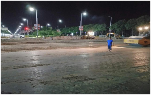 西環(huán)路平交口道路自建設(shè)以來,項目部克服時間緊、任務(wù)重、溝通難的實際困難,合理安排施工順序和時間,嚴(yán)格按照相關(guān)道路施工標(biāo)準(zhǔn)施工;廣大筑路員工冒著酷暑,加班加點,熱火朝天地奮戰(zhàn)在施工現(xiàn)場;為了保證施工安全,防止塵土和噪音污染,項目部在整個路段都設(shè)置了圍擋,利用大型挖機(jī)對路面進(jìn)行開挖,人頭攢動,機(jī)聲隆隆,一片繁忙,為早日交工提供了充分保障。(徐堯)